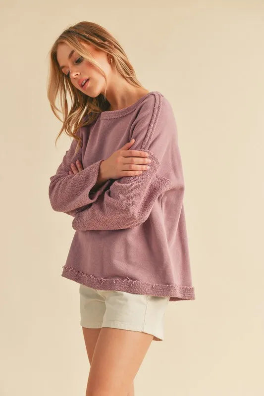Aemi + Co Frayed Edge Round Neck Sweatshirt