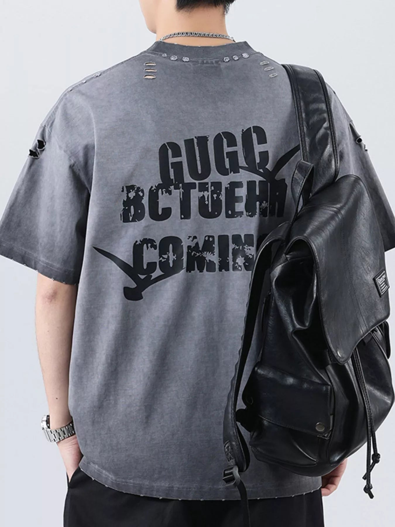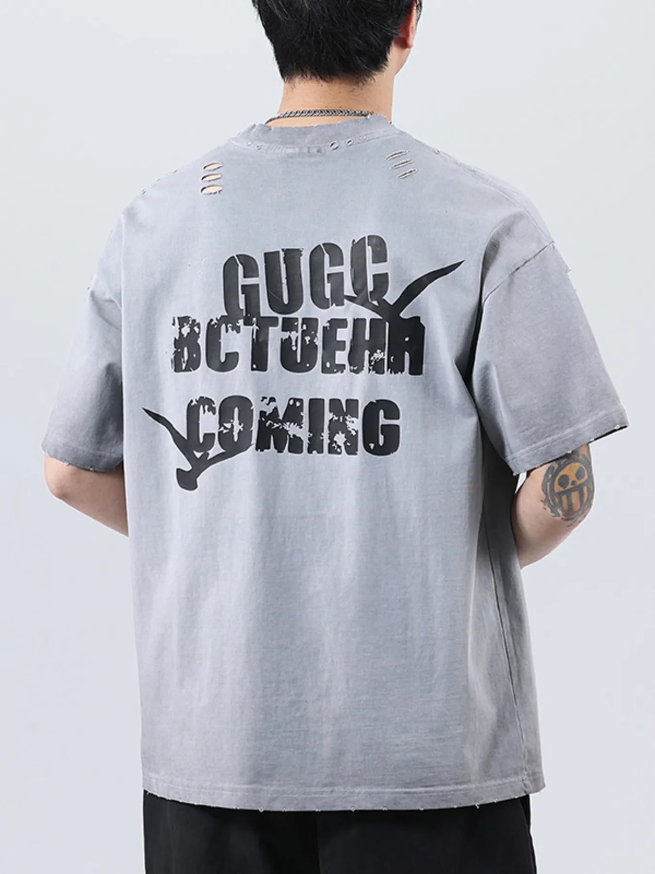 Men's Plus Size Distressed Round Neck Short Sleeve T-Shirt